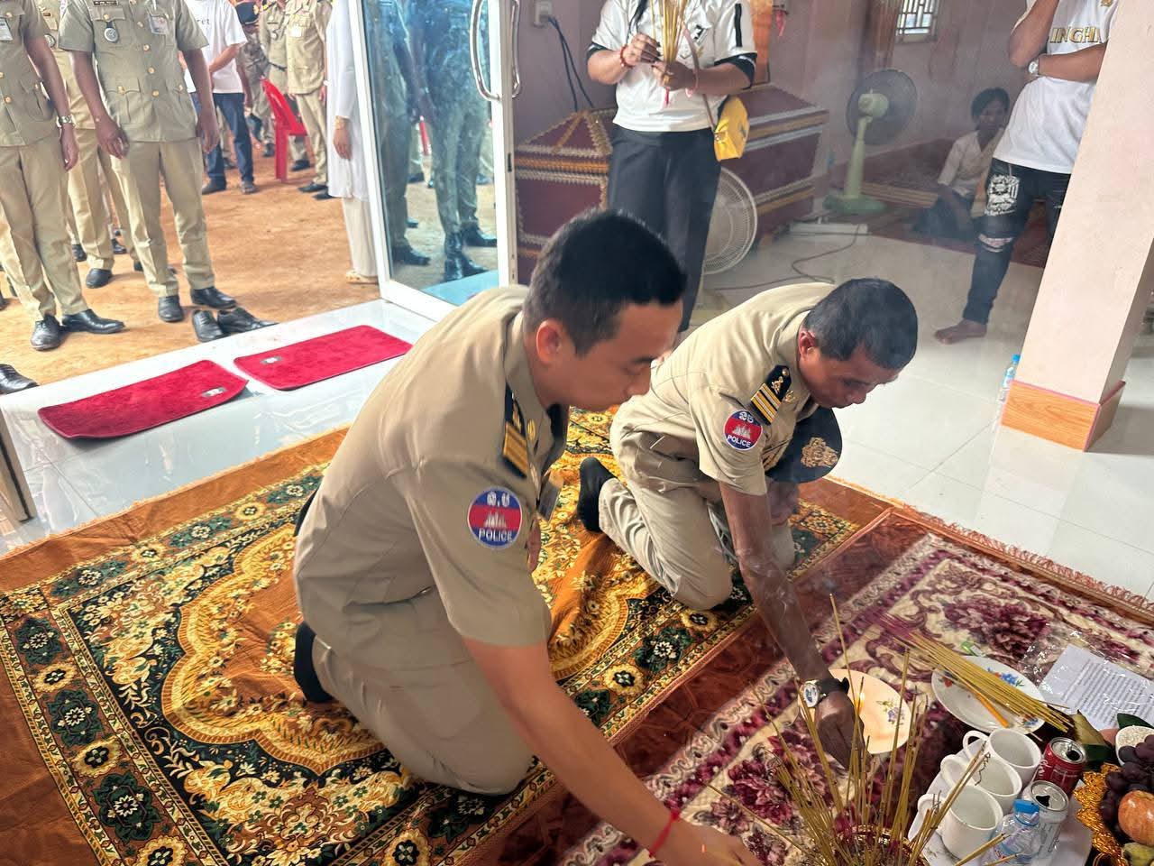 បន្ទាយមានជ័យ៖អនុវត្តតាមអនុសាសន៍ដ៏ខ្ពង់ខ្ពស់របស់ ឯកឧត្ដម នាយឧត្ដមសេនីយ៍ ស ថេត អគ្គស្នងការនគរបាលជាតិនៅថ្ងៃទី១២ខែកញ្ញាឆ្នាំ២០២៥លោកឧត្ដមសេនីយ៍ទោ សិទ្ធិ ឡោះ ស្នងការនៃស្នងការដ្ឋាននគរបាលខេត្តបន្ទាយមានជ័យបានចាត់តាំងលោកឧត្ដមសេនីយ៍ត្រី វង្ស វិត ស្នងការរងផែនការងារធនធានមនុស្សអមដំណើរដោយលោកវរសេនីយ៍ឯក ឱ នរិន្ទ នាយការិយាល័យបុគ្គលិក និងលោកវរសេនីយ៍ទោ ឌី ទាវ អធិការនៃអធិការដ្ឋាននគរបាលស្រុកមង្គលបូរីនិងមន្ត្រីនគរបាលជាច្រើនរូបចូលរួមគោរពវិញ្ញាណក្ខន្ធនិងប្រគល់ថវិកាចំនួន៨,១៧០,០០០រៀល(ប្រាំបីលានមួយសែនប្រាំពីរមុឺនរៀលគត់)ក្នុងនោះថវិការបស់សមាគមមិត្តនគរបាលជាតិកម្ពុជាចំនួន៦លានរៀលនិងថវិការបស់ស្នងការដ្ឋាននគរបាលខេត្តបន្ទាយមានជ័យចំនួន២,១៧០,០០០រៀលយកមកប្រគល់ជូនដល់គ្រួសារសពលោកវរសេនីយ៍ត្រី មួន អ៊ាយ នាយប៉ុស្តិ៍នគរបាលរដ្ឋបាលស្រះរាំង នៃអធិការដ្ឋាននគរបាលស្រុកមង្គលបូរីដែលបានទទួលមរណៈភាពនៅថ្ងៃទី១១ខែកញ្ញាឆ្នាំ២០២៥សពបានតម្កល់ធ្វើបុណ្យនៅគេហដ្ឋាននៃសពស្ថិតនៅភូមិថ្នាល់ដាច់ ឃុំភ្នំដី ស្រុកភ្នំស្រុក ខេត្តបន្ទាយមានជ័យ។