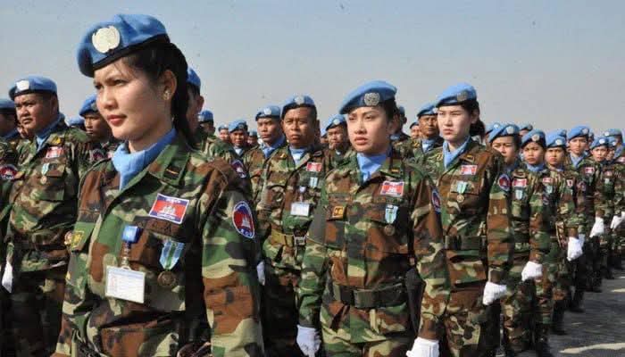 កម្ពុជាបានចូលរួមយ៉ាងសកម្មនៅក្នុងសកម្មភាពថែរក្សាសន្តិភាព ស្ថិរភាព ដែលក្នុងរយៈពេល ជាង១០ឆ្នាំកន្លងទៅនេះ កម្ពុជារបស់យើងបានបញ្ជូនកងទ័ពមួកខៀវ ទៅក្រៅប្រទេសជាច្រើននាក់ផងដែរ ក្នុងនោះកងទ័ពជាស្ត្រី ទាំងទ័ពបុរស ទៅកាន់ប្រទេសមួយចំនួនដូចជា ស៊ូដង់ ស៊ូដង់ខាងត្បូង លីបង់ អាហ្វ្រិកកណ្តាល ស៉ីរី សាយប្រឹស ម៉ាលី។ល។ កងកម្លាំងទ័ពមួកខៀវកម្ពុជា ជាកម្លាំងជំនាញ ផ្នែកវិស្វកម្ម កម្លាំងពេទ្យកម្រិត២ កម្លាំងបោសសម្អាតមីន កម្លាំងអាវុធហត្ថ និងកម្លាំងកម្ទេចយុទ្ធភ័ណ្ឌមិនទាន់ផ្ទុះ ហើយកាលពីពេលថ្មីៗនេះ កម្ពុជាបានជាប់ជាប្រទេសនាំមុខគេដែលផ្តល់ឱកាសឲ្យនារីកងទ័ពមួកខៀវទៅចូលរួមបេសកកម្មជាលក្ខណៈអន្តរជាតិក្នុងក្របខ័ណ្ឌអង្គការសហប្រជាជាតិ៕