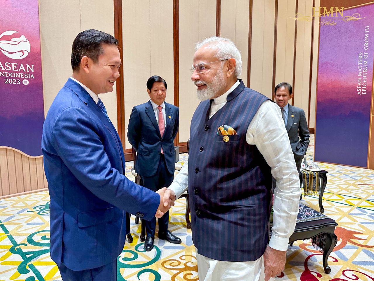 នៅព្រឹកថ្ងៃទី៧ ខែកញ្ញា ឆ្នាំ ២០២៣ នេះ សម្ដេចមហាបវរធិបតី ហ៊ុន ម៉ាណែត នាយករដ្ឋមន្ត្រី នៃព្រះរាជាណាចក្រកម្ពុជា បានអញ្ជើញជួបសម្ដែងការគួរសម និងពិភាក្សាការងារ ជាមួយ ឯកឧត្តម ហ្វឺឌីណាន់ រ៉ូម៉ូដេស ម៉ាកូស ជេអរ (Ferdinand Romualdez Marcos Jr. ) ប្រធានាធិបតី នៃសាធារណរដ្ឋហ្វីលីពីន ក្នុងឱកាសដែលថ្នាក់ដឹកនាំទាំងពីរបានអញ្ជើញចូលរួមក្នុងកិច្ចប្រជុំកំពូលអាស៊ានលើកទី៤៣ និងកិច្ចប្រជុំពាក់ព័ន្ធ នៅប្រទេសឥណ្ឌូនេស៊ី៕